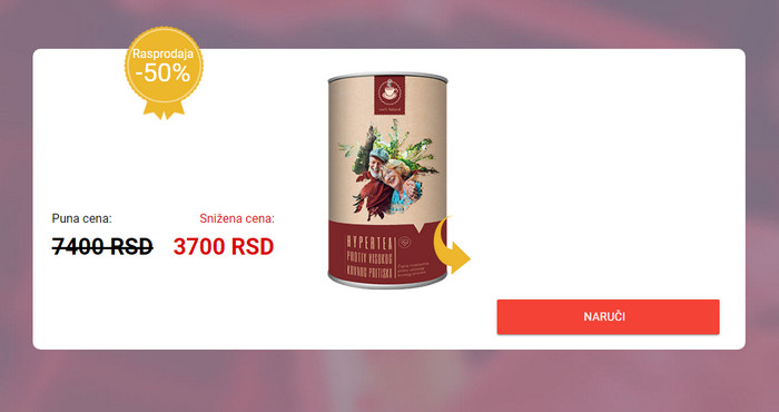 Čaj za hipertenziju Hypertea možete naručiti samo na službenoj web stranici proizvođača. Ne preporučujemo naručivanje u ljekarnama ili na drugim web lokacijama. Rastom popularnosti Hypertea, na tržištu se pojavio veliki broj lažnih proizvoda. Čuvajte se i ne padajte na niske cijene.